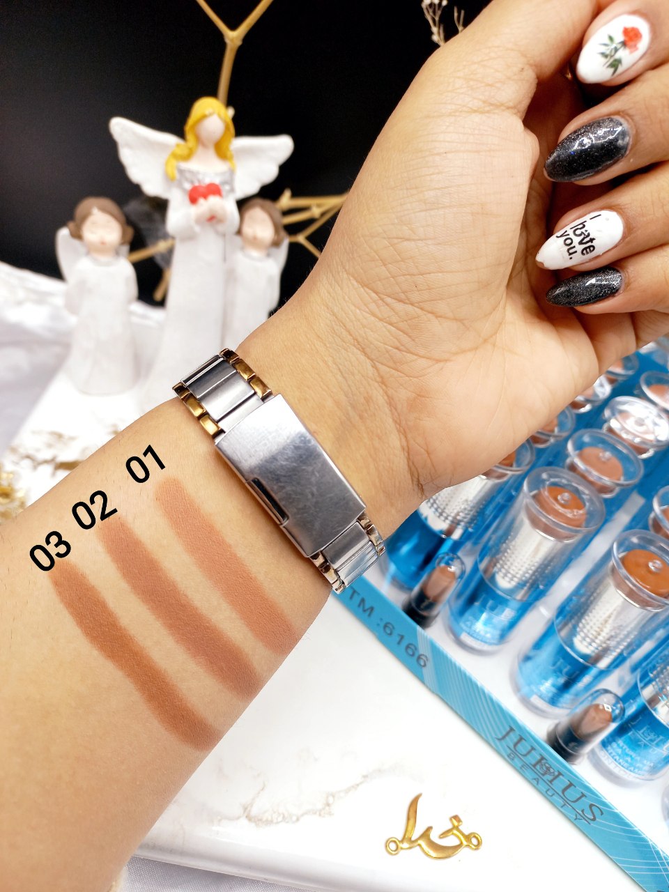 دارای پیگمنت بسیار بالا،بلندینگ و پخش بسیار راحت و فوق العاده،فاقد چربی و قابل استفاده برای همه ی پوست ها،جلوه مات و نچرال،بافت سبک و عدم ماسیدن و ریزش و ماندگاری بسیار بالا مناسب برای استفاده روزانه و در 3 تناژ رنگ مختلف